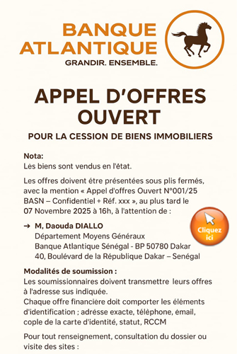 - Monsieur Saloum NDIAYE, Conseiller technique, titulaire d’un Master en Gouvernance, Villes et Territoires, est nommé Coordonnateur du projet Mobilier national ;
